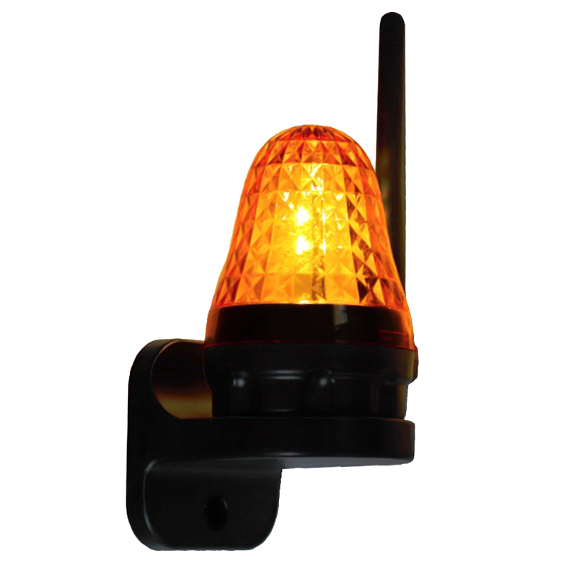 Maják - zajišťuje bezpečnost pro pohony bran. Výstražné světlo oranžové barvy (neotáčivý, nehlučný) osazen elektronickou deskou, která zajišťuje i ve dne jasné blikání se svítivými LED SMD diodami. Napájení 12-240 AC/DC (stejnosměrné nebo střídavé napětí) Řídící elektronika obsahuje měnič napětí. Možno nastavit blikání, nebo stálé svícení. Jednoduchá montáž i zapojení (nezáleží na polaritě). Univerzální použití. Maják lze na základně (držáku) otočit o 180st, nebo sundat a maják instalovat na stojato na slupek. Výška s anténou 160mm. Maják k sadě pohonů není nutný, avšak doporučujeme jej z důvodů bezpečnosti (pohony mají tichý chod), již z dálky je uživatel informován o chodu pohonů vrat a lze také nastavit signalizaci otevřených vrat.
