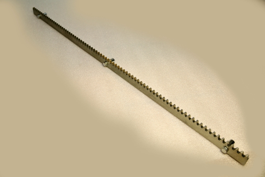 Ocelový ozubený hřeben síly 8mm pro posuvnou bránu délky 1m, včetně šroubů a návarových distančních matic. Vhodný pro brány s hmotnosti nad 600kg.
